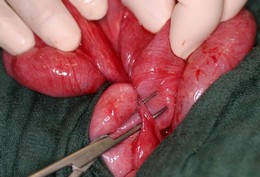 Операция при “брид илеус”, прерязване на срастването и освобождаване на червото